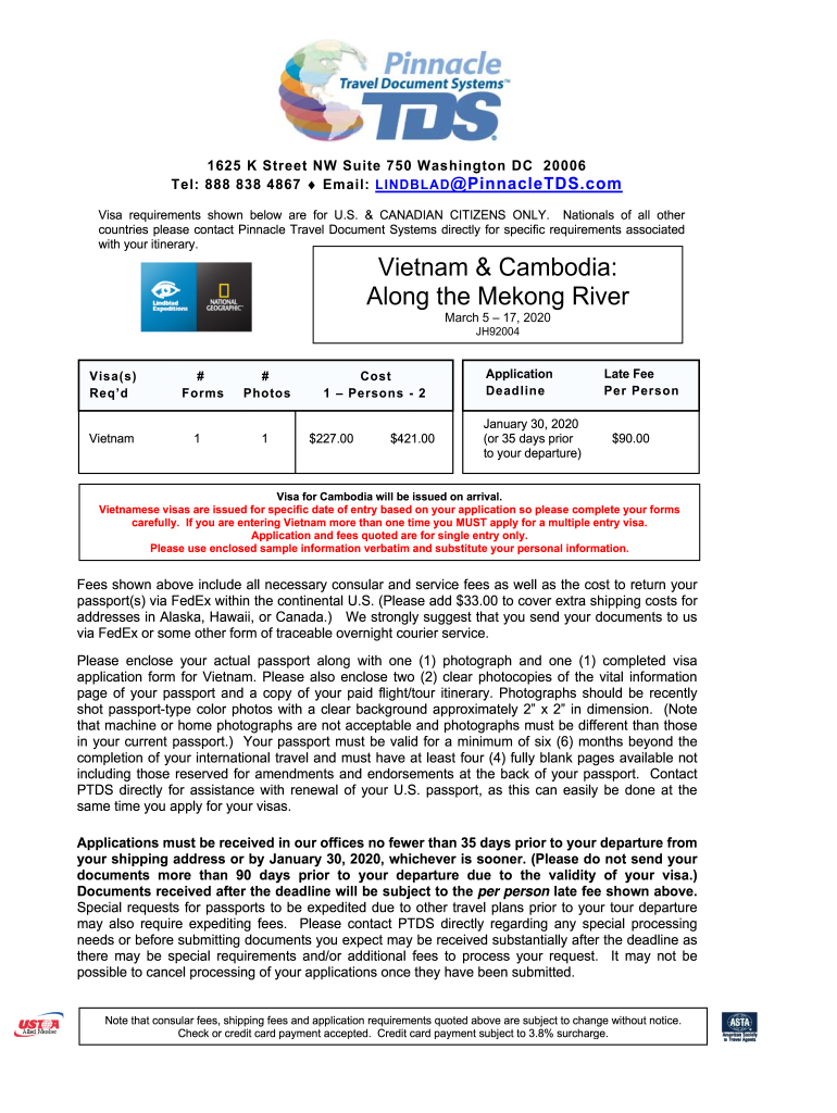 1625 K Street NW Suite 750 Washington DC 20006 Tel: 888 838 4867 Email: SINDBAD PinnacleTDS.com Visa requirements shown below are for U.S. & CANADIAN CITIZENS ONLY. Nationals of all other countries