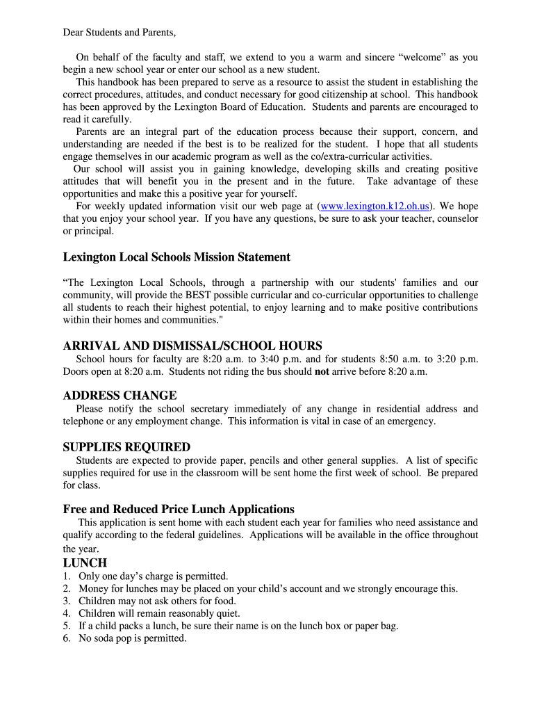Get the free Lexington Local Schools Mission Statement ARRIVAL AND ...