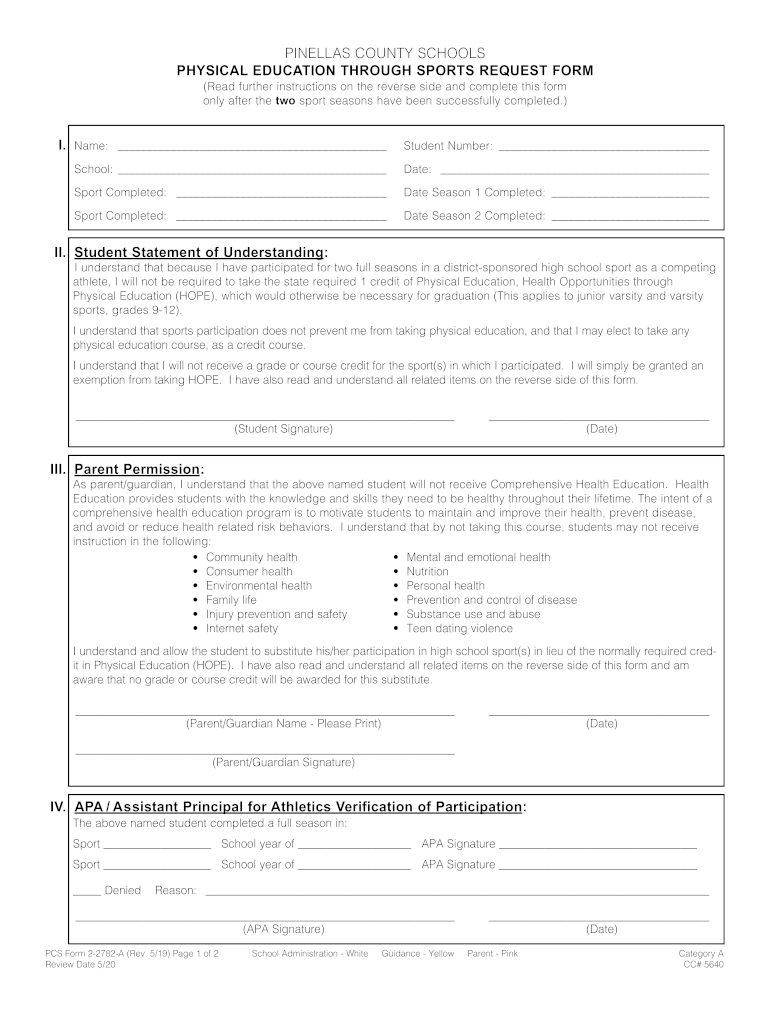 Get the free High School Athletic Participation Form - Pinellas County ...