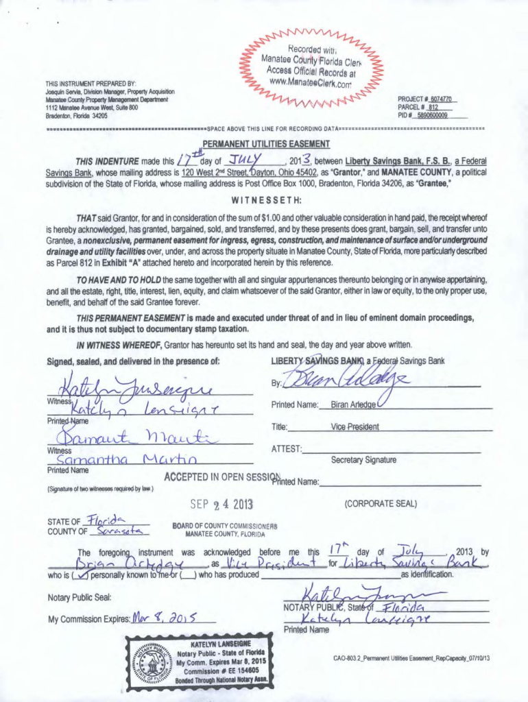 Nils INSTR...:NT PREPARED BY: Joequi1 Sea. Design Manager, Property AcqUtilicn ...... Coldly Propel1y Yell., r.ll Otpet1rl×1l 1112 M! Lee Again Welt. Sure 800 Bradenton, Florida 34205PRo. ET # 6074770
