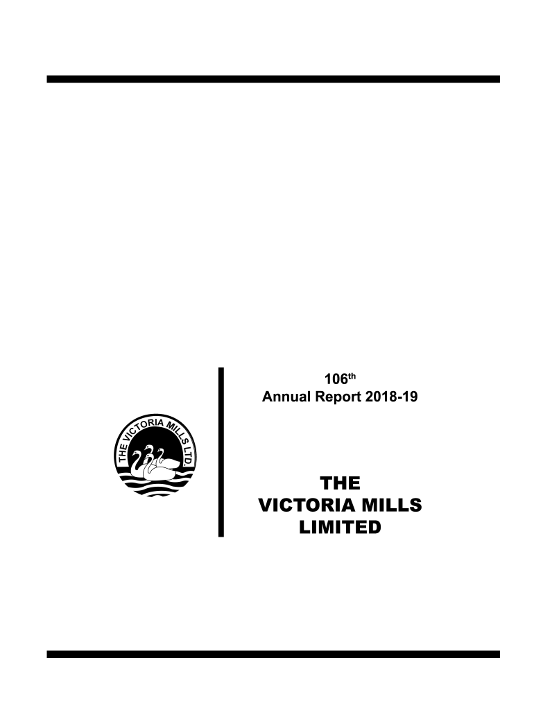 106th Annual Report 201819 THE V IS LTD. GLORIA MI THE VICTORIA MILLS LIMITED106th Annual Report 201819 20182019 THE VICTORIA MILLS LIMITED, MUMBAI ANNUAL REPORT WITH BALANCE SHEET AND PROFIT AND