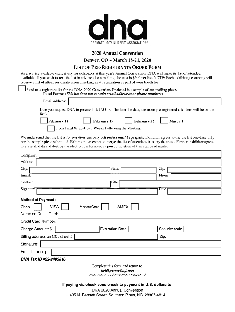 2020 Annual Convention Denver, CO March 1821, 2020 LIST OF REGISTRANTS ORDER FORM As a service available exclusively for exhibitors at this year's Annual Convention, DNA will make its list of attendees