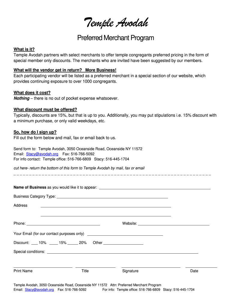 Temple Avowal Preferred Merchant Program What is it? Temple Avowal partners with select merchants to offer temple congregants preferred pricing in the form of special member only discounts. The merchants