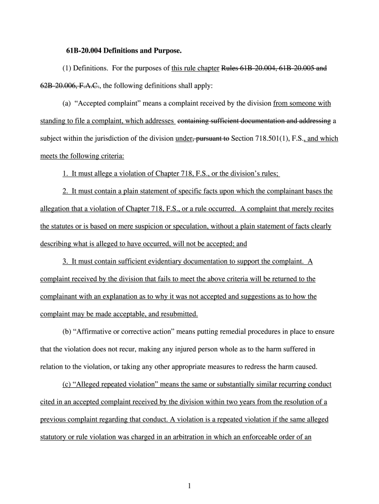 (1) Definitions. For the purposes of this rule chapter Rules 61B20.004, 61B20.005 and