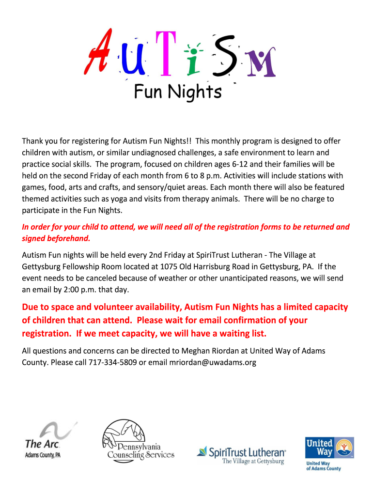 Get the free Due to space and volunteer availability, Autism Fun Nights ...