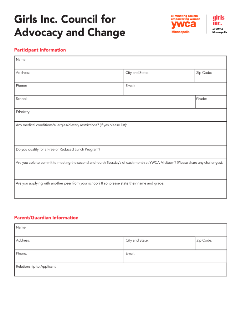 We are accepting applications for the Girls Inc. Council for Advocacy and Change (CAC).