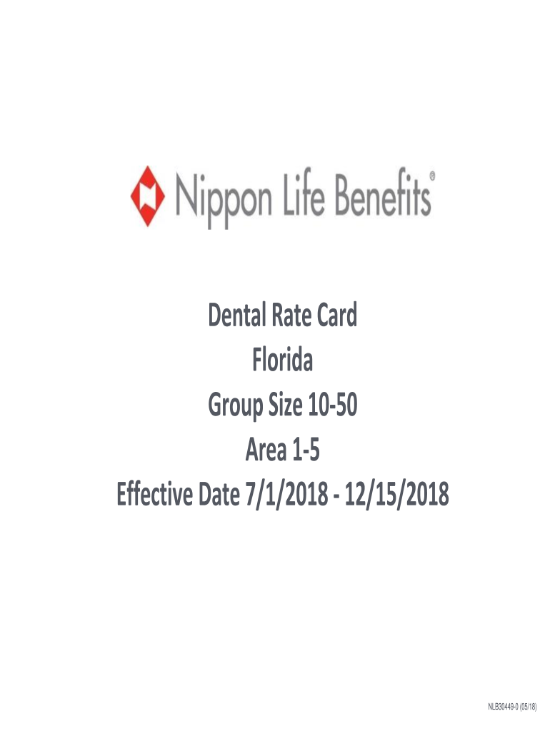 Dental Rate Card Florida Group Size 1050 Area 15 Effective Date 7/1/2018 12/15/2018NLB304490 (05/18)Nippon Life Insurance Company of AmericaDENTAL RATE CARD Groups 1050 enrolled FL 10Florida 50 Area