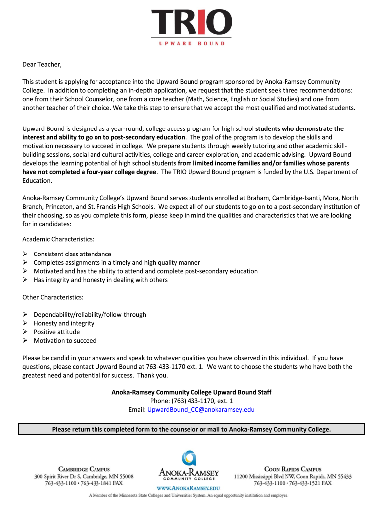 This student is applying for acceptance into the Upward Bound program sponsored by AnokaRamsey Community
