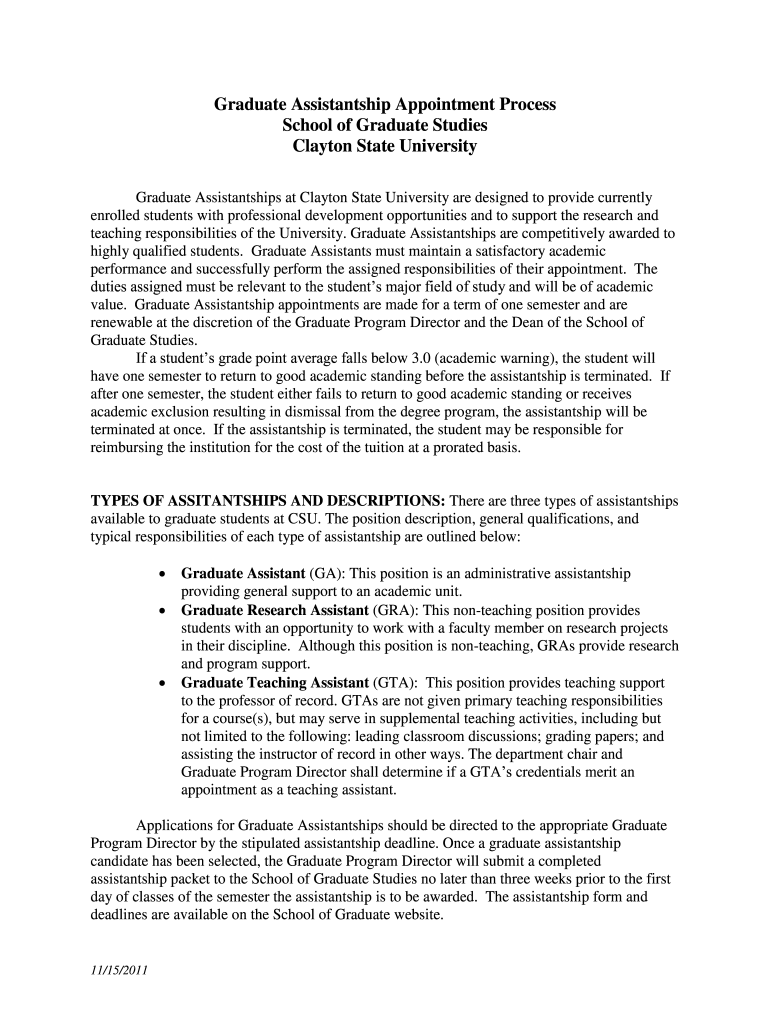 Graduate Assistant ships at Clayton State University are designed to provide currently