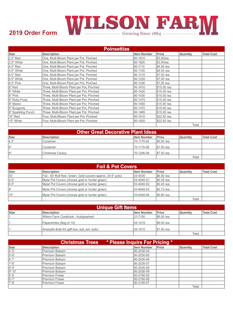 2019 Order Form Poinsettias Size 2.5 Red 2.5 White 4.5 Red 4.5 White 6.5 Red 6.5 White 6.5 Pink 8 Red 8 White 8 Pink 8 Ruby Frost 8 Main 8 Burgundy 8 Sparkling Punch 10 Red 10 WhiteDescription One,