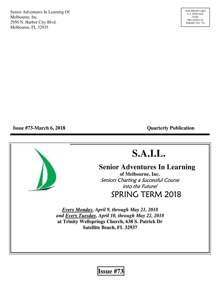 Melbourne, FL 32935Issue #73March 6, 2018Quarterly Publications.