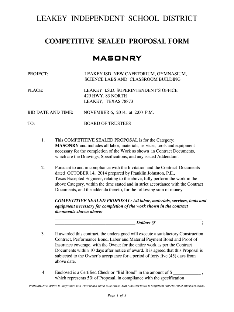 Get the free Word Pro - MASONRY-COMPETITIVE SEALED PROPOSAL FORM - LEAKEYISD9-22-14