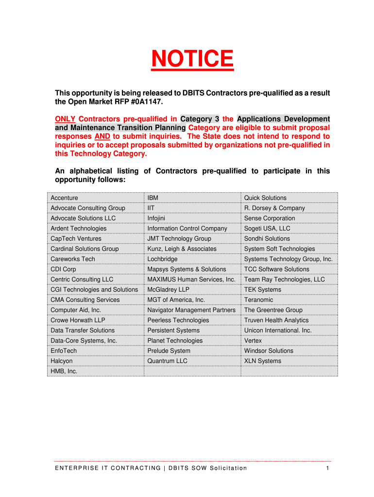 Get the free This opportunity is being released to DBITS Contractors pre-qualified as a result