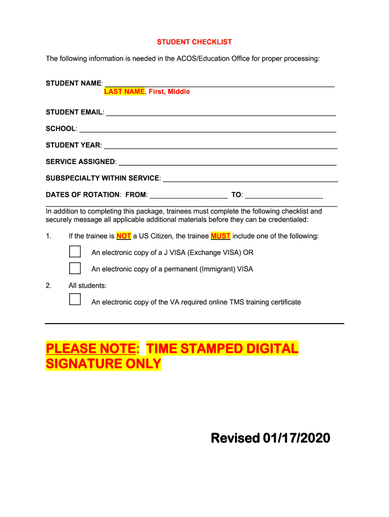 STUDENT CHECKLIST The following information is needed in the ACTS/Education Office for proper processing: STUDENT NAME: LAST NAME, First, Middle STUDENT EMAIL: SCHOOL: STUDENT YEAR: SERVICE ASSIGNED: