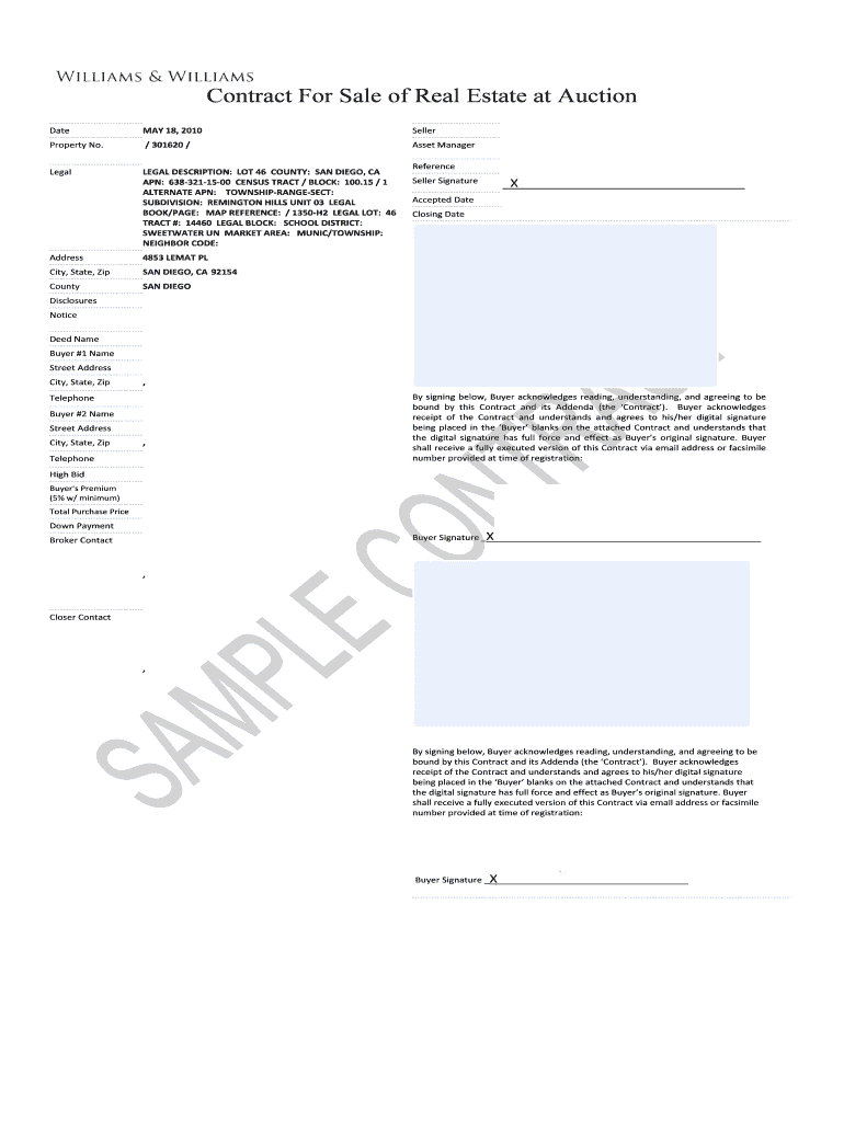 Real Estate Purchase Agreement at Auction: Sample and Example