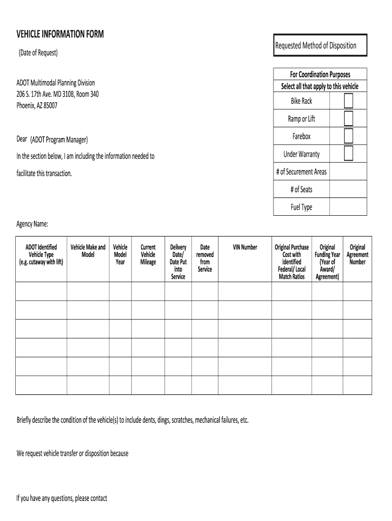 VEHICLE INFORMATION FORMRequested Method of Disposition(Date of Request)For Coordination Purposes