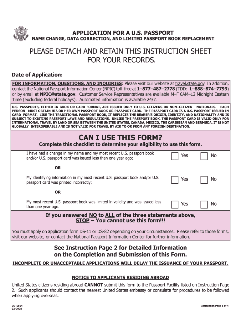 The US Passport Name Change Form, specifically the DS-5504 form, is essential for U.S. citizens seeking to update their passport details due to name changes, data corrections, or limited passport replacements. This form allows individuals to ensure that their passport reflects their current legal name accurately. Accurate information in passport documents is crucial, as discrepancies can lead to issues during travel or identification processes.