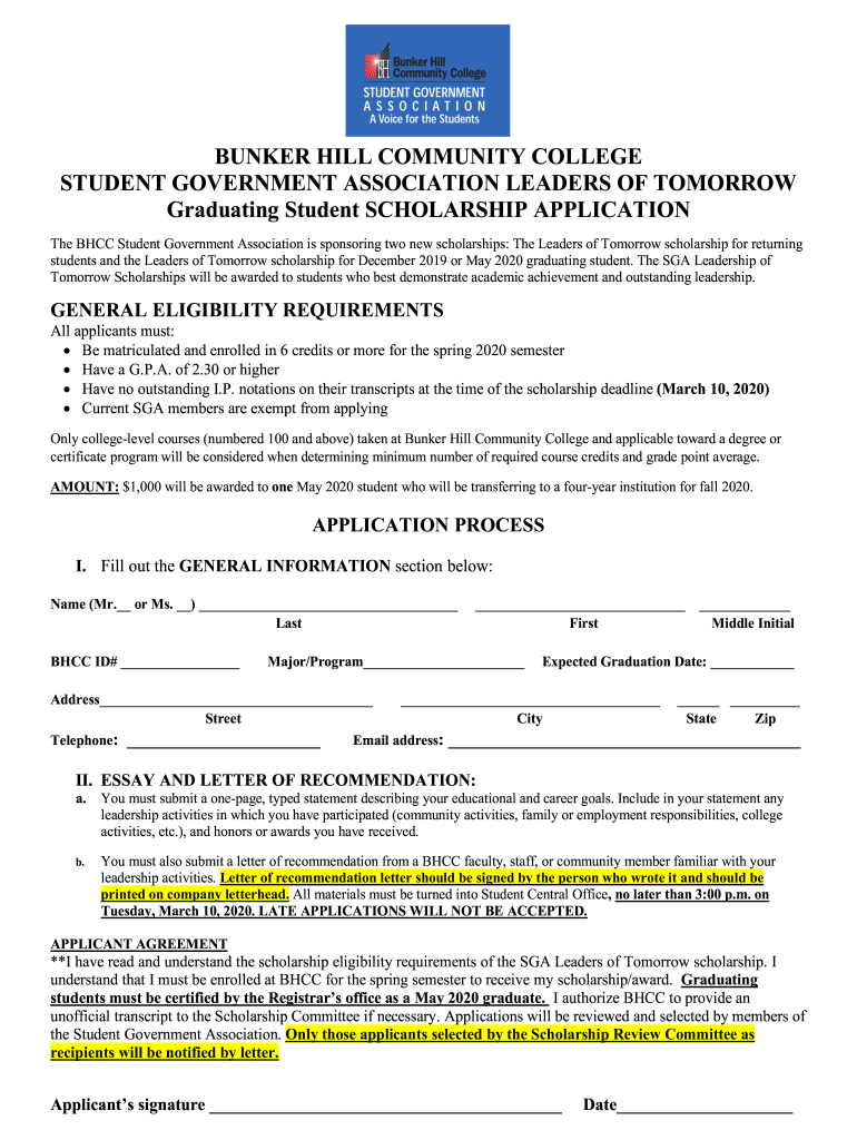 Get the free BHCC Student Government Association Leaders of Tomorrow-Graduating Student.doc