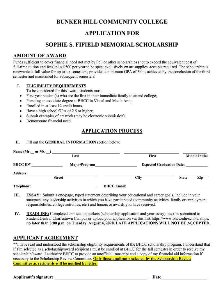 SOPHIE S. FIELD MEMORIAL SCHOLARSHIP