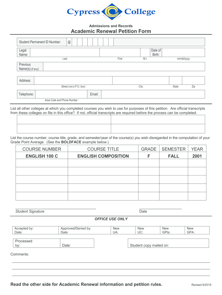 Admissions and RecordsAcademic Renewal Petition Form