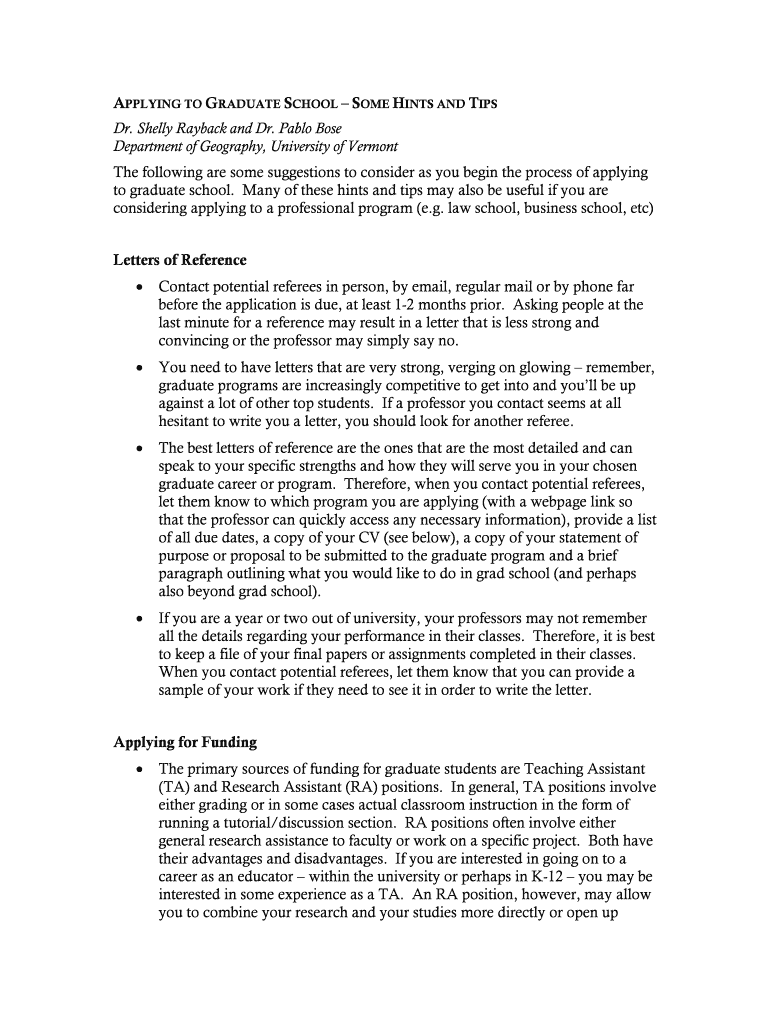 Get the free APPLYING TO GRADUATE SCHOOL SOME HINTS AND TIPS