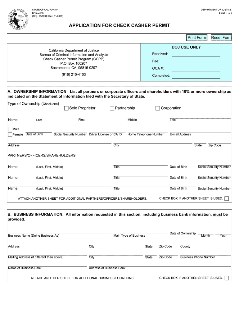 Get the free BCIA 4130 - APPLICATION FOR CHECK CASHER PERMIT. BCIA 4130 - APPLICATION FOR CHECK C...