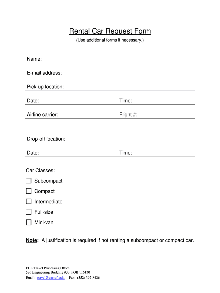 Note: The need for a rental car request form varies depending on the individual's circumstances and preferences. Some may opt for alternative transportation options or not require a rental car at all.