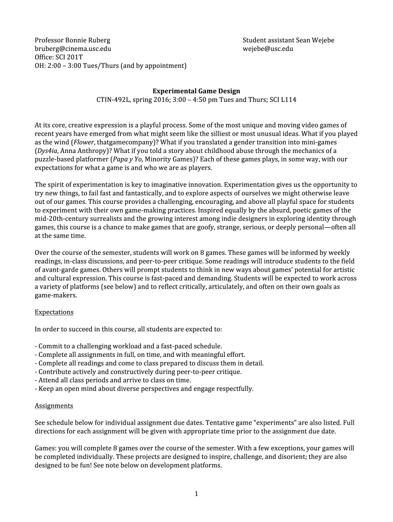 Bonnie Ruberg sample syllabus typically includes course title, instructor name, contact information, course description, learning objectives, schedule of topics, reading assignments, assessment criteria, and grading policy.