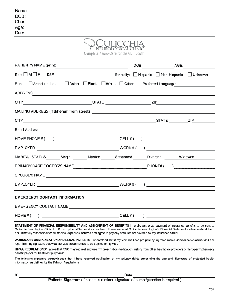 0culicchia neurological clinic forms are medical forms used by the clinic to gather information about patients' medical history, symptoms, and treatments.