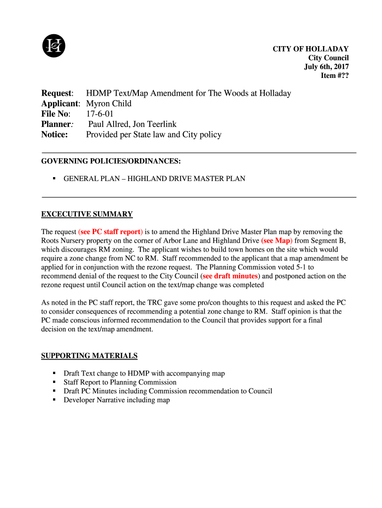 Get the free Request: HDMP Text/Map Amendment for The Woods at Holladay ...