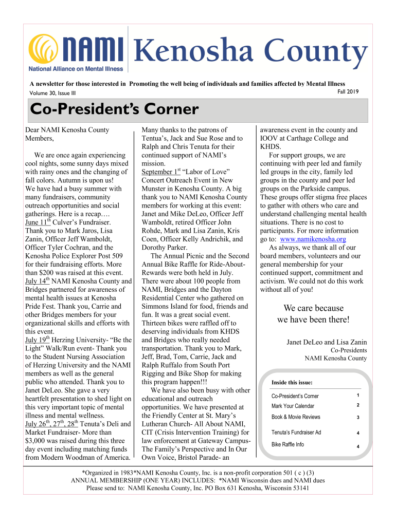 A newsletter for those interested in Promoting the well-being of individuals and families affected by Mental Illness