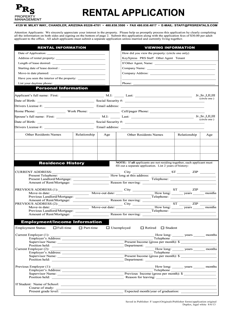 Attention Applicants: We sincerely appreciate your interest in the property. Please help us promptly process this application by clearly completing all the information on both sides and signing on