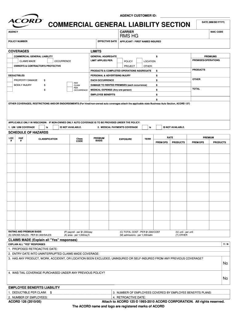 The primary purpose of the Commercial General Liability Insurance Application is to provide insurers with comprehensive information that assesses the applicant’s liability exposure. By filling out this application, businesses can efficiently determine the type of coverage they need and benefit from various protective features. Additionally, having general liability insurance protects against potential claims, safeguarding the business's financial stability.
