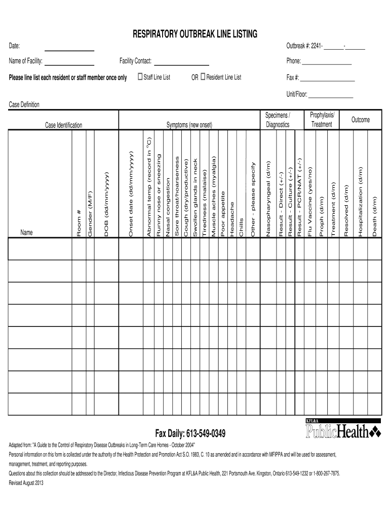 Get the free Respiratory Outbreak Line Listing Form