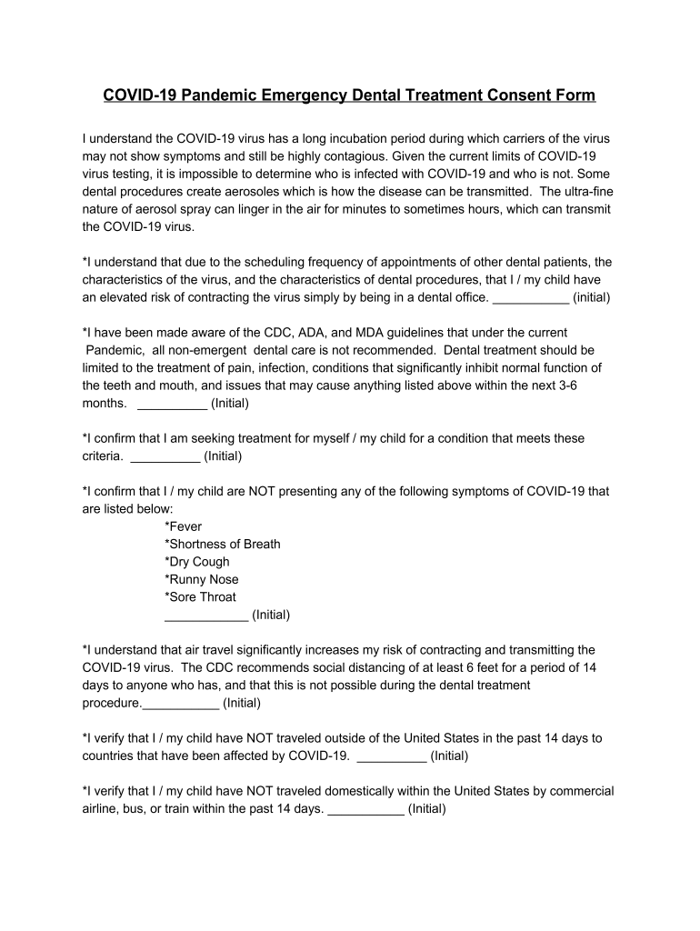 COVID-19 Pandemic Emergency Dental Treatment Consent Form