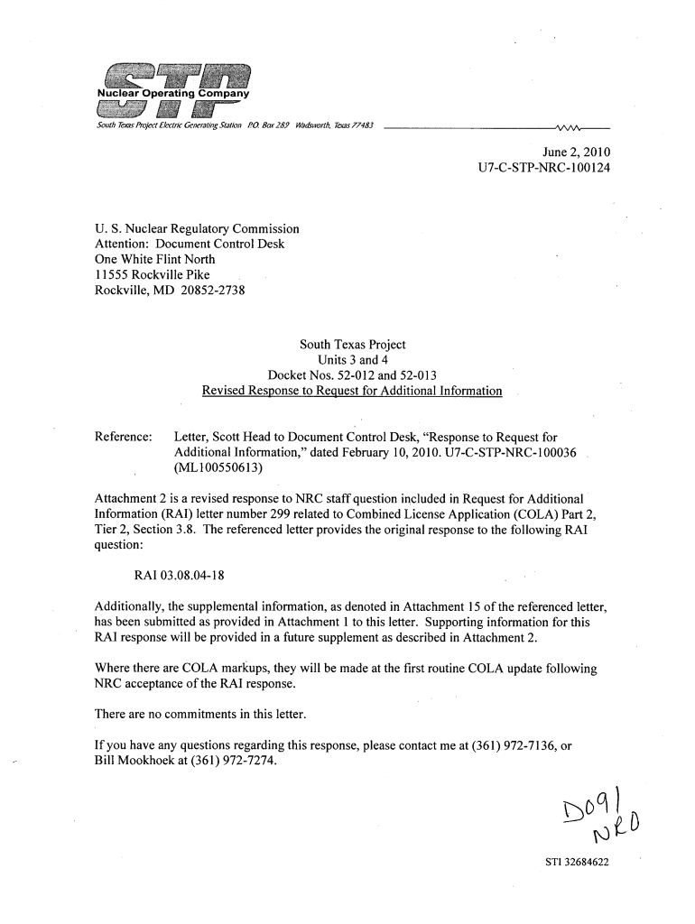 Get the free South Texas Project, Units 3 and 4, Revised Response to Request ...