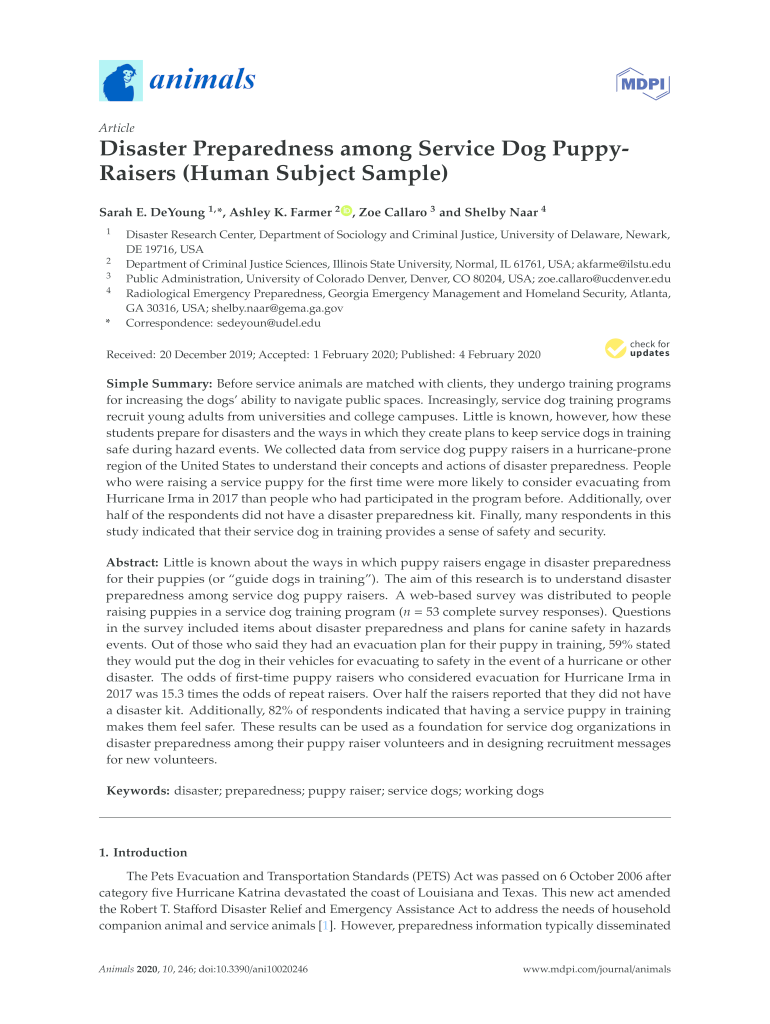ArticleDisaster Preparedness among Service Dog Appraisers (Human Subject Sample)
