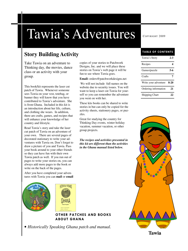 PATCH WORK D DESIGNS, INCTawias Adventures TA BLE O F CO N TEN History Building Activity