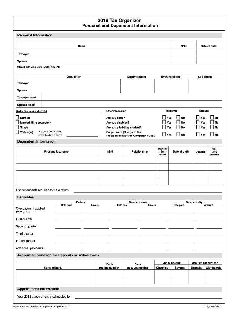 2019 Tax Organizer