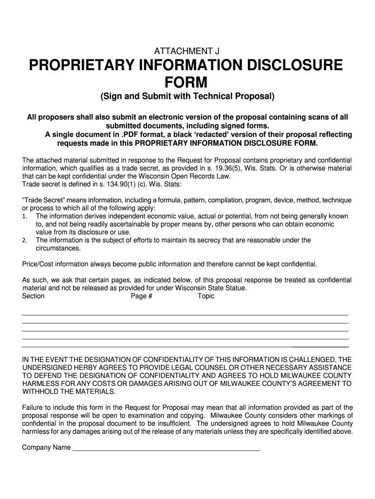 Get the free PROPRIETARY INFORMATION DISCLOSURE