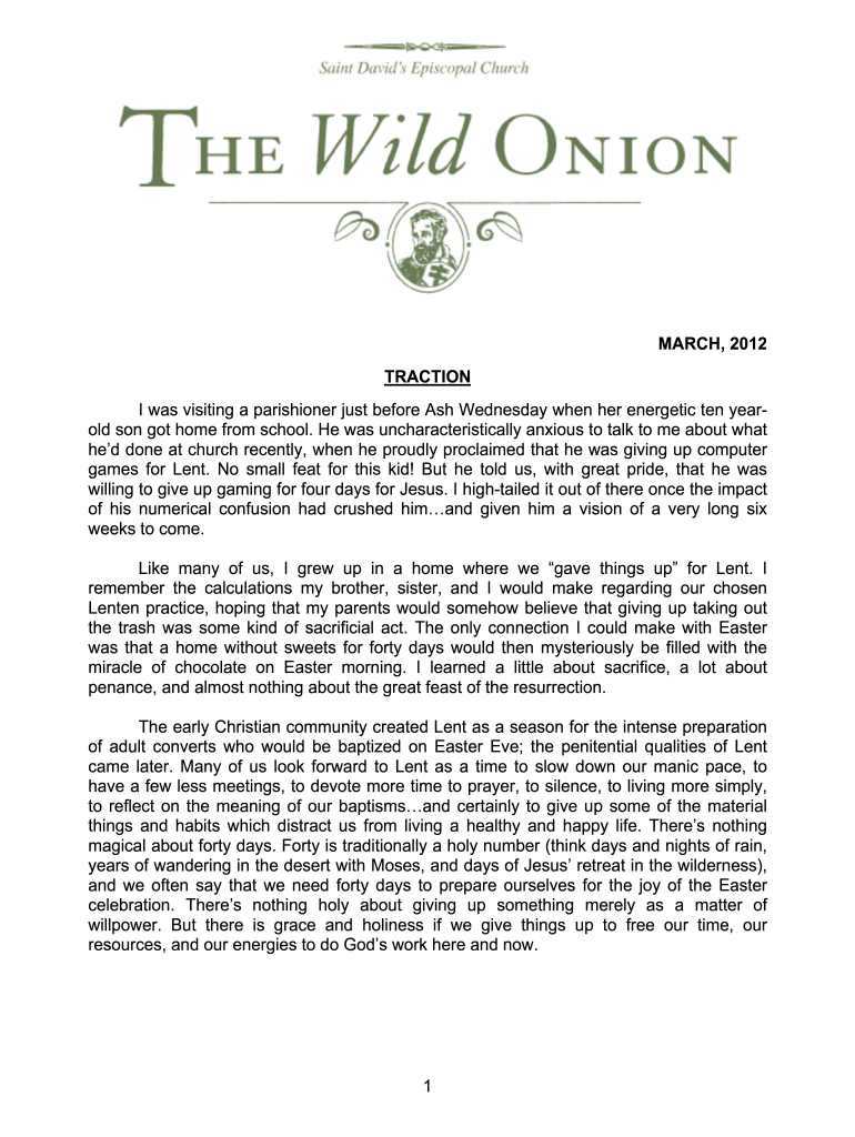 I was visiting a parishioner just before Ash Wednesday when her energetic ten-year-old son got home from school. He was uncharacteristically anxious to talk to me about what