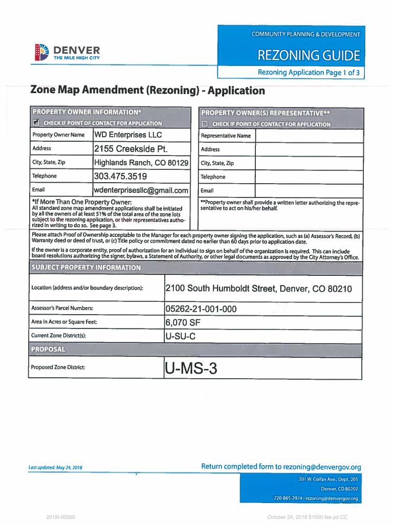 2018I00060October 24, $20181000 fee pd CC2018I00060October 24, $20181000 fee pd CC2018I00060October 24, $20181000 fee pd CC2100 S. Humboldt Street, Denver, CO 80210