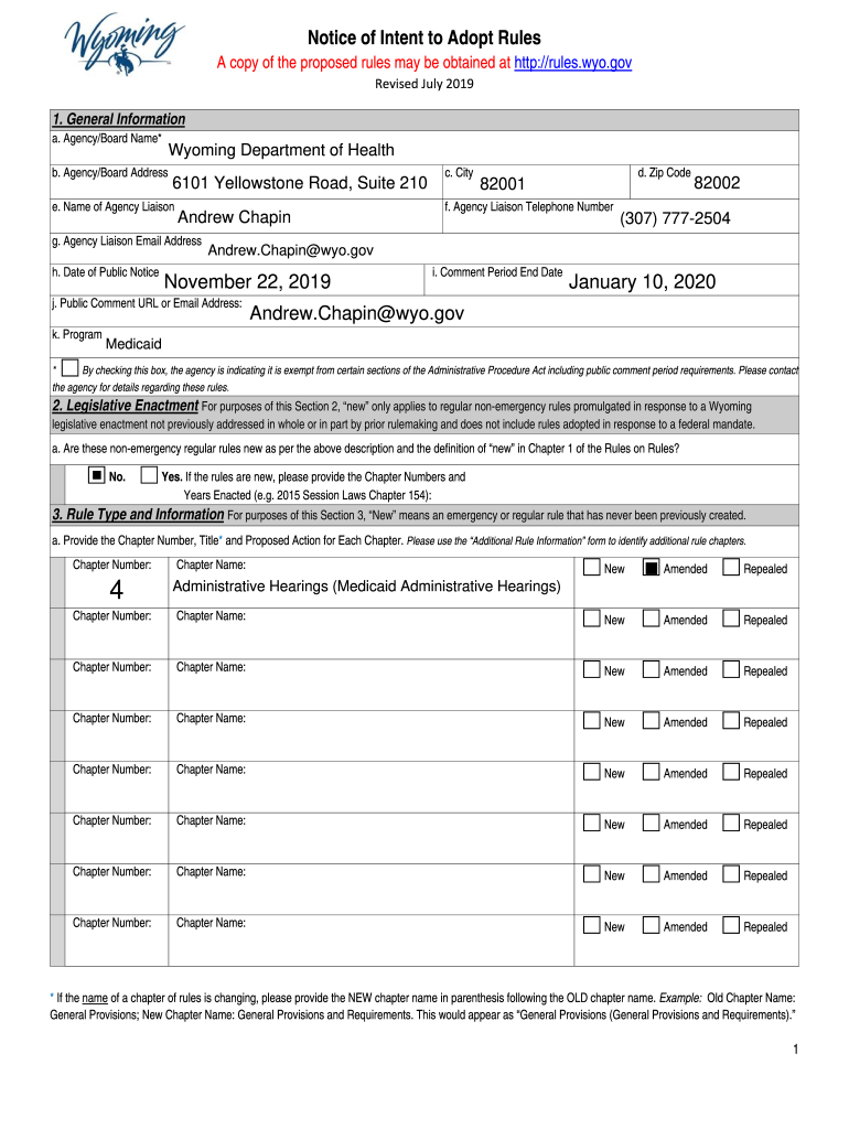 A copy of the proposed rules may be obtained at http://rules.wyo.gov