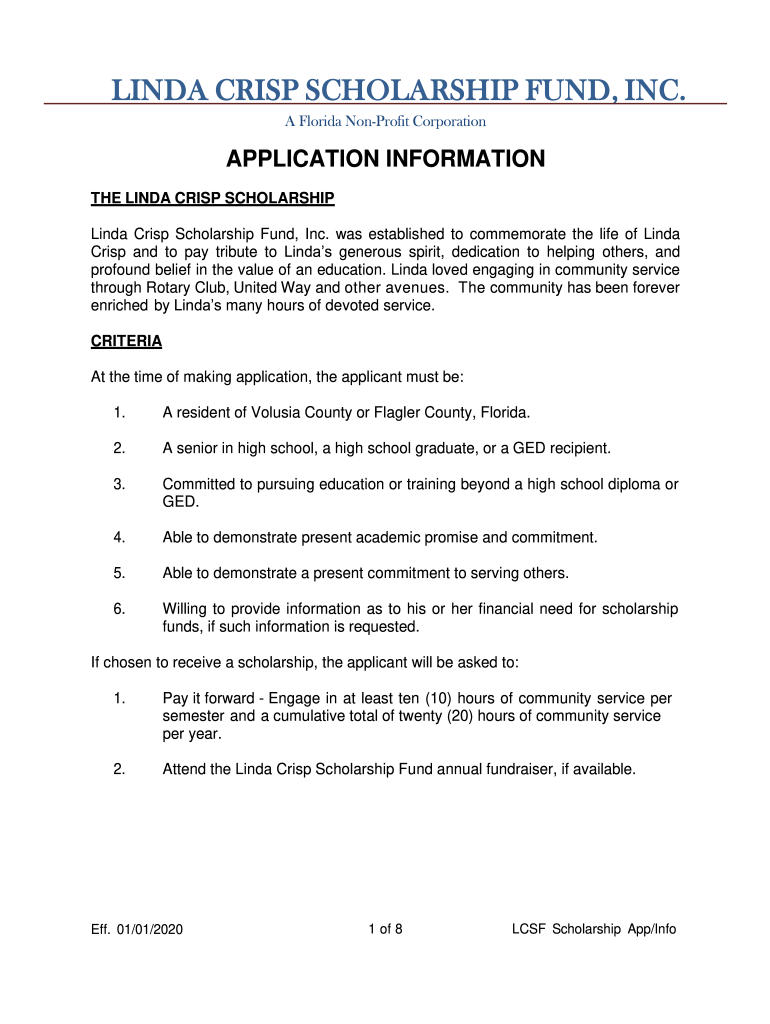 Get the free linda crisp scholarship fund, inc. - New Smyrna Beach High ...