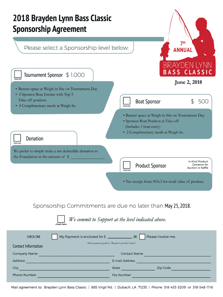 Get the free 2018 Brayden Lynn Bass Classic Sponsorship Agreement