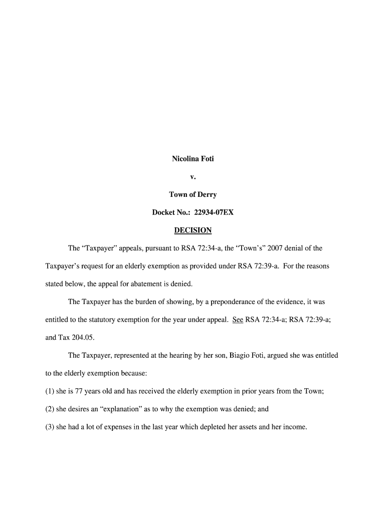 Get the free Nicolina Foti v. Town of Derry Docket No.: 22934-07EX DECISION The