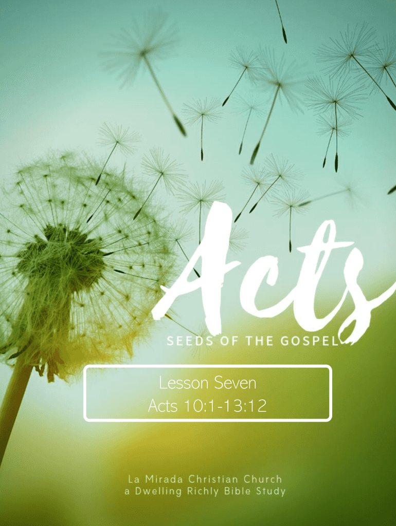 Lesson Seven Acts 10:113:12Acts Seeds of the Gospel Lesson Seven Acts 10:113:12 A Dwelling Richly Bible StudyWritten by Jennifer Richmond 2020, Dwelling Richly Jennifer LaMiradaChurch.com www.JenniferGRichmond.com