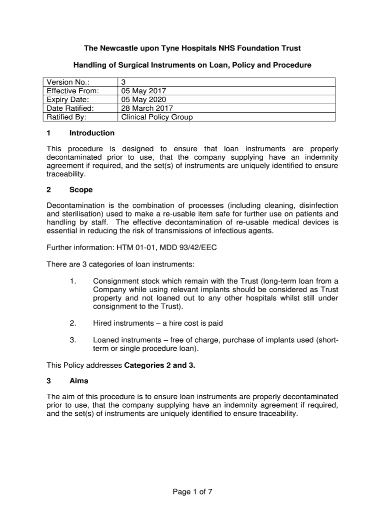 Get the free Handling of Surgical Instruments on Loan, Policy and Procedure. May 2017, Impact Ass...