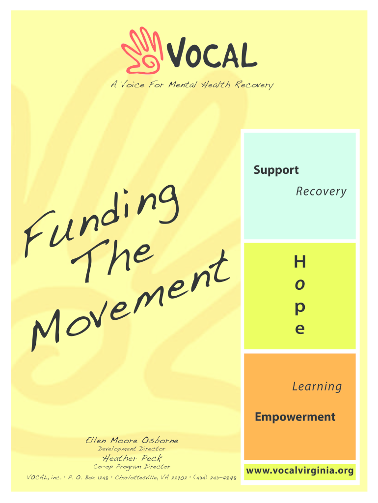 A Voice For Mental Health Recovery n i d n u F he Tents m e v o Support Recovery e Learning Empowerment Ellen Moore Osborne Development Director Heather PeckCoop Program Director VOCAL, inc. P. O.