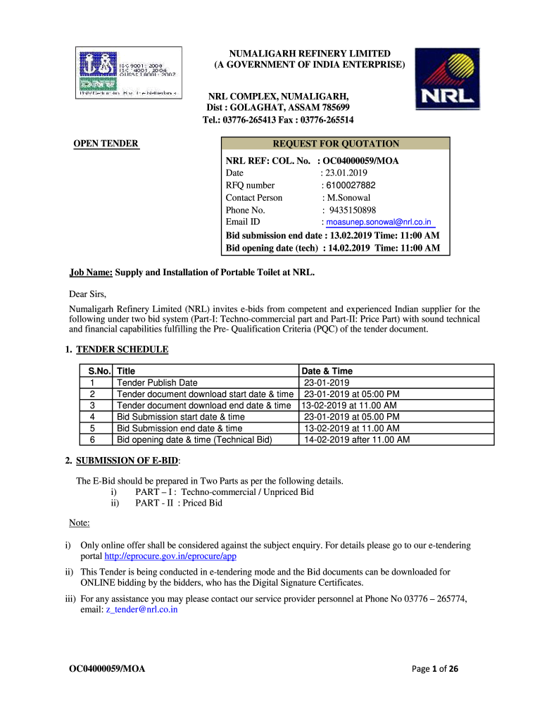 Get the free 03776265514 Open Tender REQUEST FOR QUOTATION ...